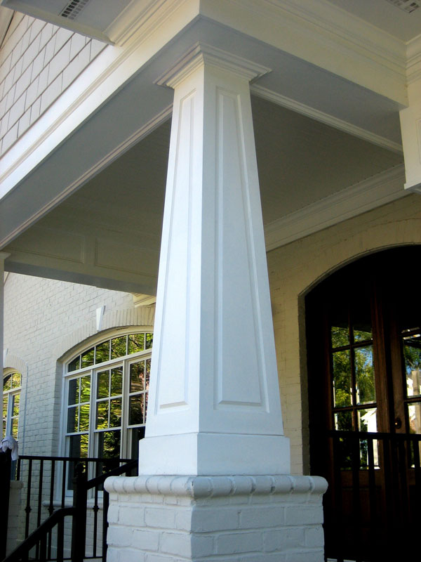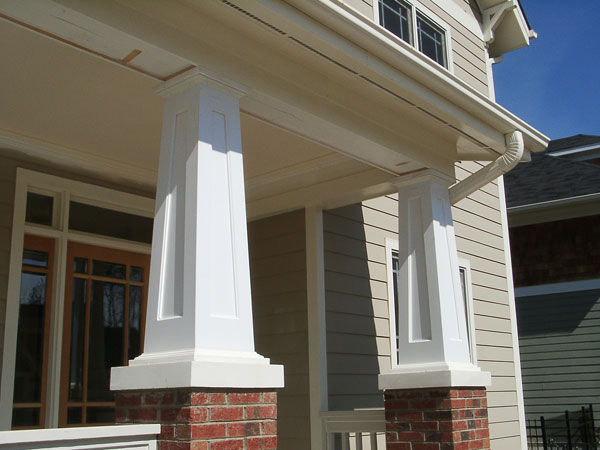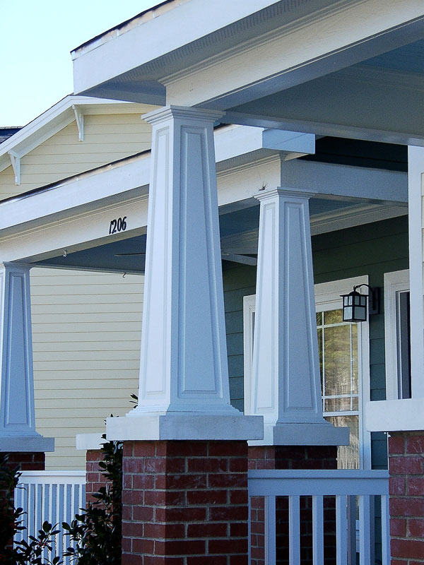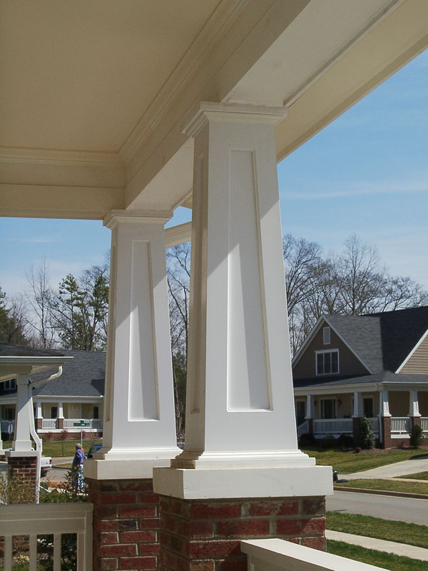 Raised Panel Bungalow Columns on Brick Piers PVC Tapered Shafts, Capitals & Bases