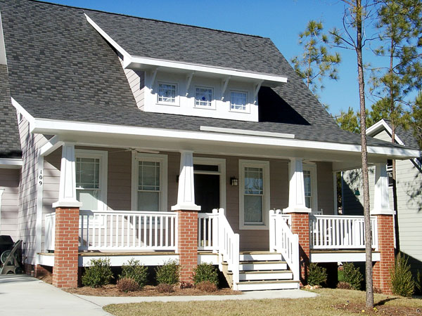 Raised-Panel Bungalow Columns on Brick Piers PVC Tapered Shafts, Capitals & Bases PVC Railings & Spindles