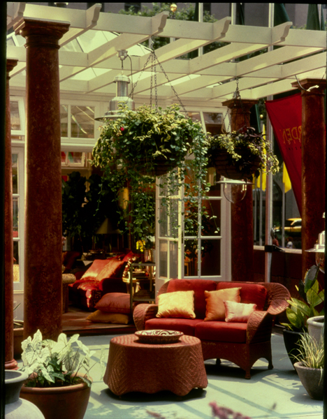 Architectural Columns Tuscan Capitals & Bases Tapered Round Stain-Grade Wood Columns 14" x 12' Garden Design Show Pergola Rockefeller Center, New York City, New York (NY)